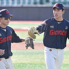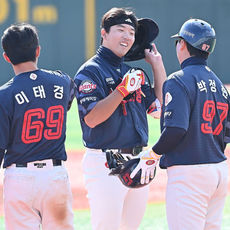 2025.10.31 13: 39이영재, 병살 잡은 박지훈과 하이파이브