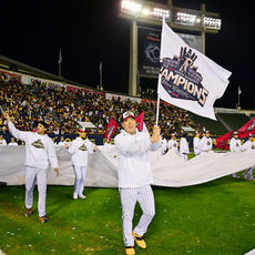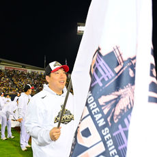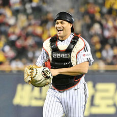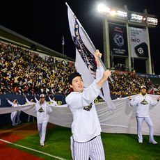 임찬규,'깃발을 들고 그라운드 세리머니'