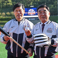2025.11.01 15: 52기념촬영하는 허구연 KBO 총재와 김두겸 울산 시장