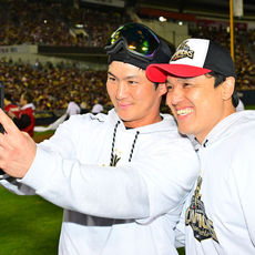 2025.11.01 21: 15오지환-박동원,'우승 기념사진 활짝'