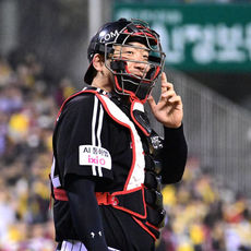 2025.11.01 21: 27한국시리즈 MVP 김현수, '팬들 위해 포수 마스크 쓰고'