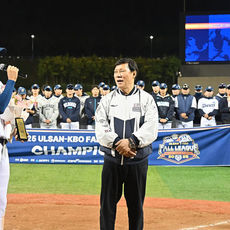 2025.11.01 18: 49공필성 감독, 2025 울산-KBO Fall League 우승 트로피 들었다.