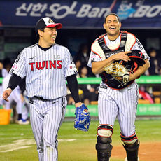 2025.11.02 01: 21박동원-치리노스,'서로 포지션 바꾸니 재미있어'