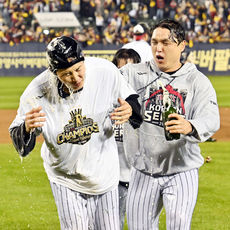 2025.11.02 14: 23임찬규 추격하며 샴페인 샤워 시키는 박동원