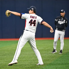 2025.11.04 15: 06류지현 감독 앞에서 훈련하는 김서현