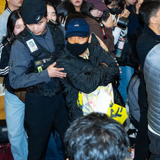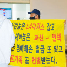 2025.11.06 19: 28김혜성 인터뷰때, 비난 현수막을 펼친 후 제지당해