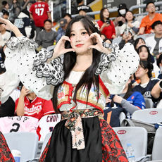 2025.11.09 18: 51이주은 치어리더,'체코 전통 의상 입고 볼하트'