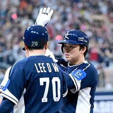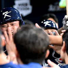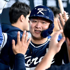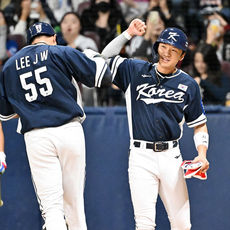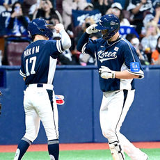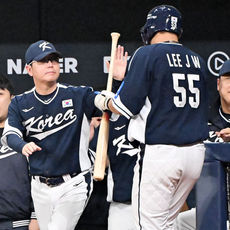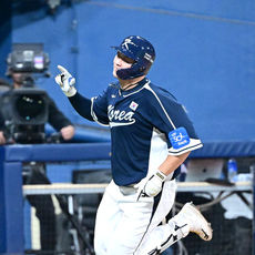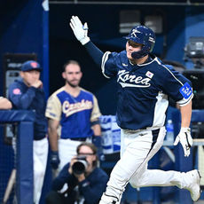 2025.11.09 16: 53대표팀 이재원, '투런포에 뜨거운 환영 받으며'