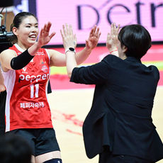 2025.11.13 21: 37페퍼 장소연 감독과 승리 기뻐하는 시마무라