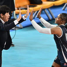 2025.11.15 18: 357연승 기쁨 나누는 모마와 김종민 감독