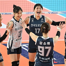2025.11.15 18: 17한국도로공사 선수들, 짜릿한 7연승