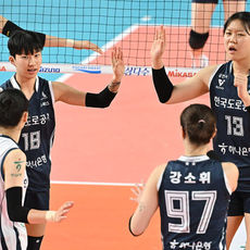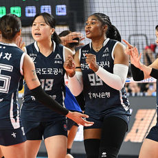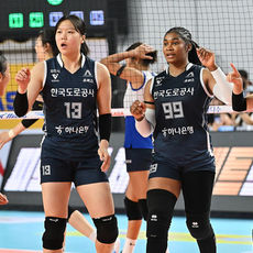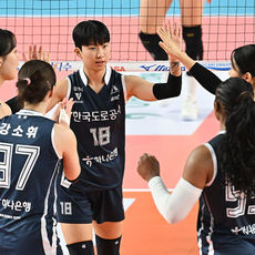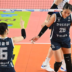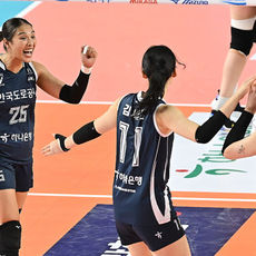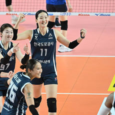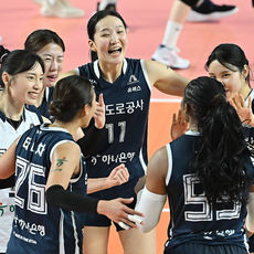 2025.11.15 17: 58모마 서브 득점 기뻐하는 한국도로공사 선수들