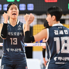 2025.11.15 17: 46김세인 환상 리시브 이어 받은 이지윤, 득점 성공 환호