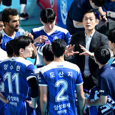 2025.11.15 15: 36선수들과 작전타임 갖는 삼성화재 김상우 감독