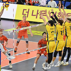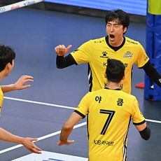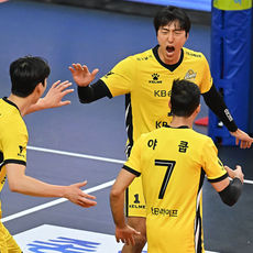 2025.11.18 20: 03득점 기쁨 나누는 KB손해보험 선수들