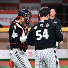 2026.04.04 20: 52박동원-유영찬, 승리 지켜냈다