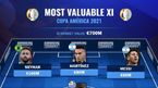 [OSEN=이균재 기자] 코파 아메리카서 몸값이 가장 높은 베스트 일레븐이 공개됐다.남미 월드컵으로 불리는 2021년 코파 아메리카는 지난 14일 브라질서 개막해 내달 11일까지 펼쳐진다. 독일축구 이적 전문사이트인트랜스퍼마르크...