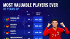 [OSEN=이균재 기자] 크리스티아누 호날두(36, 맨체스터 유나이티드)가 35세 이상 축구 선수 중 역대 몸값 1위에 올랐다.독일축구 이적 전문사이트인트랜스퍼마르크트는 11일 공식 SNS에 35세 이상 선수 중 역대 시장가치 1~10위를 소개...