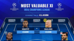 [OSEN=이균재 기자] 별들의 무대에 참가 중인 선수들로 구성된 최고 몸값 베스트 일레븐이 공개됐다.독일축구 이적 전문사이트인트랜스퍼마르크트는 15일 공식 SNS에 유럽챔피언스리그 몸값 베스트11을 선정해 공개했다.4-4-2 포메...