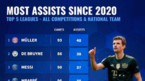 [OSEN=이균재 기자] 2020년 이래로 도움왕은 누구일까?독일축구 이적 전문사이트인트랜스퍼마르크트 27일 공식 SNS에 유럽 5대리그서 뛰는 선수 중 클럽팀과 대표팀을 통틀어 2020년 이후 현재까지 최다 도움왕 1~10위를 공개했다.1위...