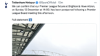 [OSEN=노진주 기자]'토트넘-레스터시티 경기도 취소될 수 있다?'토트넘은 10일(한국시간) 공식 홈페이지를 통해 “오는 12일열릴 예정이었던 브라이튼 앤 호브 알비온과의 잉글리시 프리미어리그(EPL) 경기가 연기됐다”고 ...