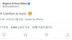 [OSEN=이인환 기자] "어이어이, 북런던 우리가 다 잡았다고".브라이튼은 16일 오후 8시30분(한국시간) 영국 런던 토트넘핫스퍼스타디움에서 토트넘을 상대로 '2021-2022시즌 잉글리시 프리미어리그(EPL)' 33라운드경기를 치러 1-...