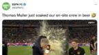 [OSEN=고성환 인턴기자]토마스 뮐러(33, 바이에른 뮌헨)가 선배 바스타인 슈바인슈타이거(38)에게 맥주 세례를 선물하며 11번째 분데스리가 우승을 자축했다. 맥주에 흠뻑 젖은 슈바인슈타이거 역시 뮐러다운 행동에 함박웃음을 터...