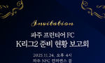 [OSEN=고성환 기자]K리그2 최초의 스페인감독 선임으로 화제를 모으고 있는 파주 프런티어 FC가 오는24일오후 4시, 파주NFC 컨퍼런스룸에서 시민들을 대상으로 K리그2 준비 현황 보고회를 개최한다.이번 보고회는 2026시즌 K리그2를 ...
