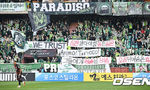 [OSEN=이인환 기자] 전북 팬들의 불만이 플래 카드로 나왔다.전북은 21일 포항 스틸야드에서 열리는 하나은행 K리그 1 2025 37라운드에서 포항과 원정경기에서 0-0 무승부에 그쳤다.이미 우승을 확정한 전북은 코리아컵을 위해 다양...