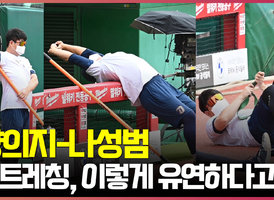 스트레칭하는 양의지-나성범, '이렇게 유연하다고?' [O! SPORTS]
