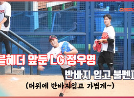 [O! SPORTS]더블헤더 앞둔 LG 정우영, ’반바지 입고 가볍게 불펜피칭’