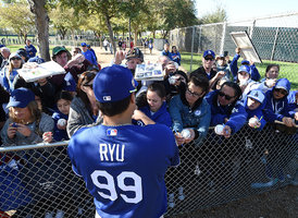 [Oh! 모션]시범 경기 하루 앞둔 류현진 '미니 사인회'
